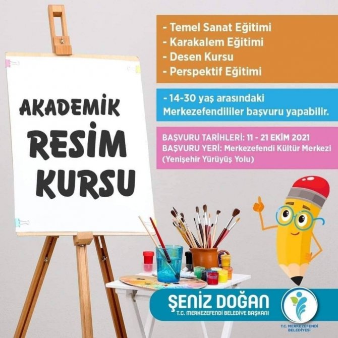 Merkezefendi Belediyesi eğitime, sanata ve kültüre desteklerini sürdürüyor. Bu kapsamda Merkezefendi Belediyesi tarafından güzel sanatlar liselerinin ve fakültelerinin sınavlarına hazırlık için "Akademik Resim Kursu" açılıyor. Merkezefendi'de ikamet eden, 14 - 30 yaş arasındaki sanatseverler, Merkezefendi Kültür Merkezi'nden şahsen başvuru yapacak. Başvurular 21 Ekim Perşembe gününe kadar devam edecek. Akademik Resim Kursu'nda temel sanat, perspektif, karakalem ve desen eğitimleri uzmanlar tarafından verilecek. İlçede kültürel ve sanatsal faaliyetlerin her zaman devam edeceğini belirten Merkezefendi Belediye Başkanı Şeniz Doğan, "Geçen dönem açmış olduğumuz akademik resim kursumuza hemşehrilerimiz büyük ilgi göstermişti. Yeni dönemde de bu kursumuzu öğrencilerimizin güzel sanatlar liselerinin ve üniversitelerinin yetenek sınavlarına hazırlanması noktasında tekrar açıyoruz. Eğitim, kültür ve sanata her zaman destek olacağız" diye konuştu.