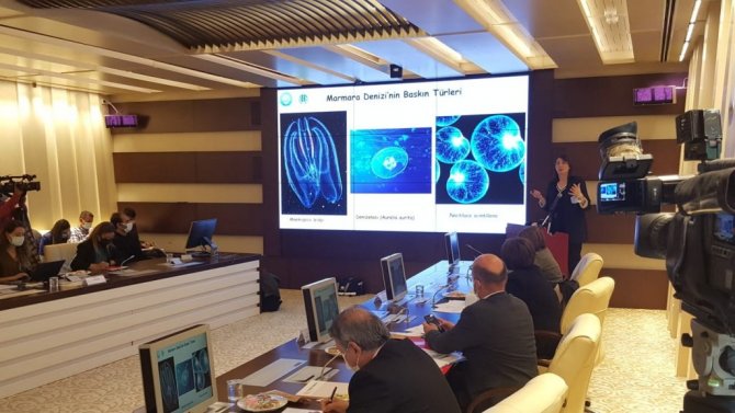 İstanbul Üniversitesi Su Bilimleri Fakültesi Dekanı Prof. Dr. Melek İşinibilir Okyar sunum yaptı. Marmara Denizi'nin doğu bölgesine gelindiğinde oksijenin yaklaşık olarak yüzde 80'inin tüketildiğini söyleyen Prof. Dr. Okyar, "Marmara Denizi'nin pek çok sorunu var. Karasal kökenli kirlilik, habitat kaybı ve bozulması, yabancı ve istilacı türler, bilinçsiz avcılık, deniz taşımacılığı gibi etkenler var. Denizdeki oksijen seviyesinin düşmesi ile birlikte bazı balık türleri bu denizden çekildi. Bunun bir getirisi olarak da Marmara Denizi'nde aşırı alg artışı ve deniz anası istilası gibi olaylar gözlemlendi" dedi. Marmara denizinin sadece müsilaj değil bir çok sıkıntısı olduğuna dikkat çeken Okyar, bu değişikliklere bağlı olarak ticari balıklarda da eksilme olduğunun görüldüğünü söyledi. Okyar, "Barbunya, Tekir, Kırlangıç'ta ne yazık ki azalma eğilimi var. Bunun yerine balığın yerini deniz anaları ve ftaplanktonik organizmalar almış. Yazılı Hani Balığı denen bir değeri olmayan yeni bir balık türü yaşamaya başlamış" dedi.
