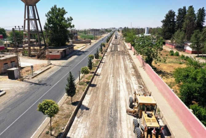 Akçakale Şanlıurfa yolunda ilçeye kazandırılacak 12 kilometrelik Prestij Caddesinde çalışmalar devam ediyor.