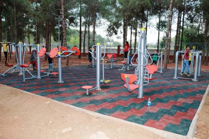 Akçakale Belediyesi ve Büyükşehir Belediyesi'nce hayata geçirilen ve ilçede ilk olma özelliği taşıyan mesire alanına spor aletleri kuruldu ve oyun grubu...