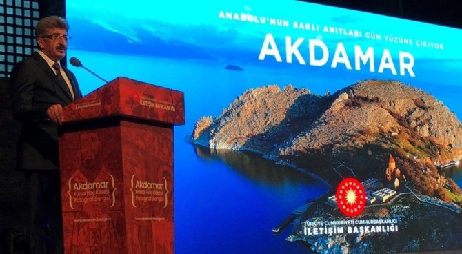 Cumhurbaşkanlığı İletişim Başkanlığı tarafından düzenlenen ’Akdamar Kutsal Haç Kilisesi Fotoğraf Sergisi ve Tanıtım Kokteyli’, Topkapı Sarayı Müzesi’ndeki Aya İrini Kilisesi’nde açıldı.