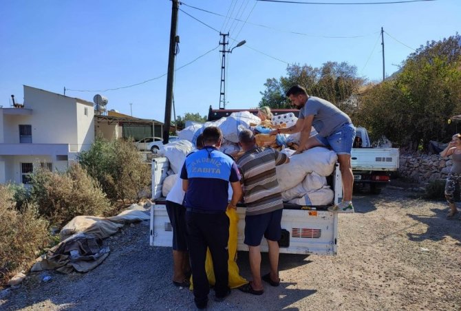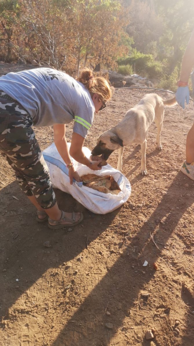 Akdeniz Zabıta Müdürlüğü ekipleri de orman yangınlarından etkilenen bölge üreticilerinin büyükbaş ve küçükbaş hayvanlarının yanı sıra kedi ve köpeklerini de unutmadı, onlar için gönüllülerin de desteğiyle araçlara doldurulan mama, su, yem ve ekmekler hazırlayıp bölgeye ulaştırdı.