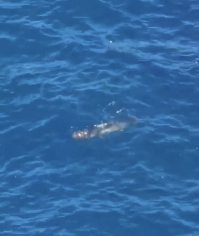 Antalya'da turistlerin gözdesi haline gelen Akdeniz foku, yaklaşık 20 metre yüksekliğe ulaşan falezler bölgesinde avladığı ahtapotu yerken vatandaşın cep telefonu kamerasına yansıdı.