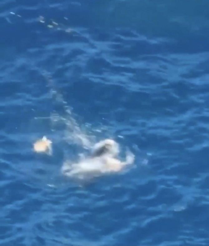 Akdeniz fokunun ahtapotu midesine indirmeye hazırlanırken yaşadığı anları görüntüleyen vatandaş o anları şaşkınlıkla izledi.