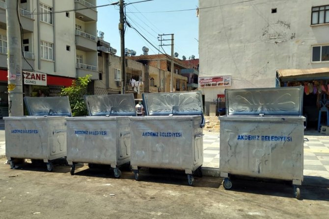 Mersin'in merkez ilçe Akdeniz Belediyesinden yapılan açıklamaya göre, temiz ve sağlıklı bir çevre ve kent için güçlendirilmiş araç ve ekipmanla ilçeye bağlı 65 mahalleye 7 gün 24 saat esasıyla hizmet veren Çevre Koruma ve Kontrol Müdürlüğü, ilçe genelinde bulunan, zaman içinde eskiyip ömrünü tamamlayan çöp konteynerlerini yenilemeye devam ediyor. Bu kapsamda, Çevre Koruma Müdürlüğüne bağlı ekipler tarafından insan, araç ve işyeri yoğunluğunun olduğu ana caddelerin yanı sıra, gerek mahalle sakinlerinin talepleri gerekse ekiplerin sahadaki incelemelerinde, ömrünü tamamladığı veya zarar gördüğü tespit edilen çöp konteynerleri yenileri ile değiştiriliyor.