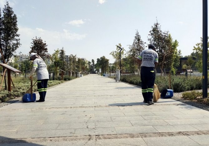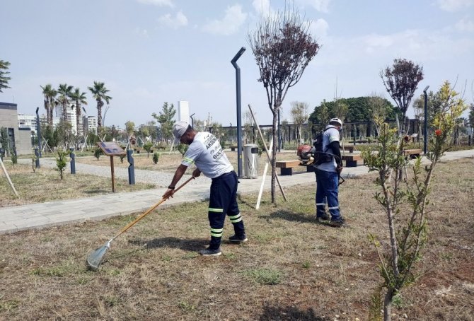 Mersin'in merkez ilçe Akdeniz Belediyesinden yapılan açıklamaya göre, Mersinlilere kazandırılan Millet Bahçesine periyodik hizmet veren Park ve Bahçeler Müdürlüğü ile Çevre Koruma ve Kontrol Müdürlüğü ekipleri, bir yandan alandaki yeşil varlığı korumaya ve arttırmaya çalışırken, diğer yandan bölgede temizlik ve bakım çalışmalarını da aksatmadan gerçekleştiriyor.