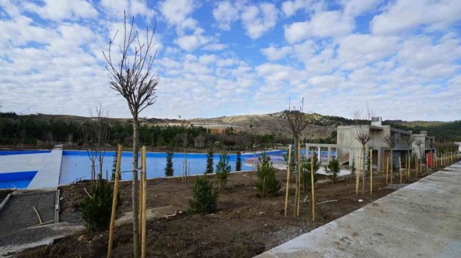 Onlarca ağaç ve bitki türüne de ev sahipliği yapacak tesiste bitkilendirme çalışmaları ve yapı imalatları tamamlanırken, doğal taş ve zemin uygulamaları için hazırlıklar sürüyor. Birçok spor dalında sahaların ve donatının yer aldığı tesiste ayrıca amfi tiyatro, suni gölet, yürüyüş yolları, oyun grupları da bulunuyor.