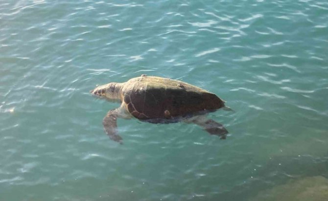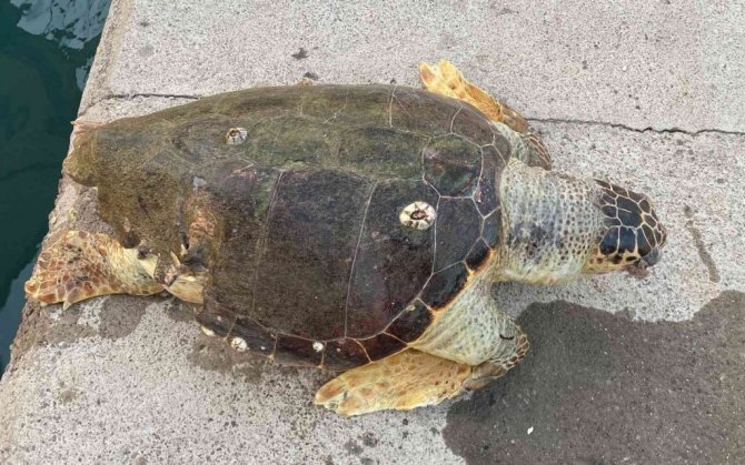 Aynı bölgede iki hafta öncede 50 yaşlarında bir deniz kaplumbağası ölü olarak bulunmuştu.