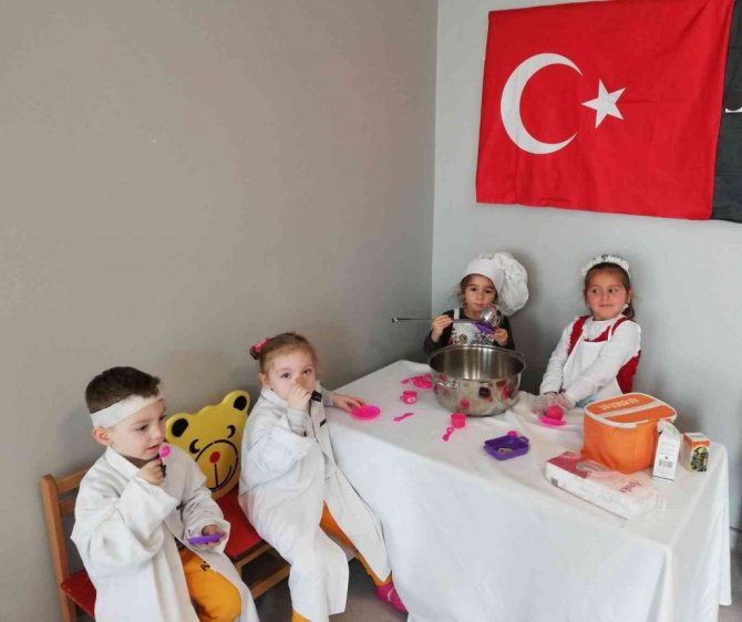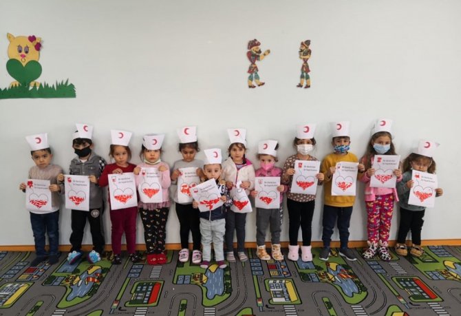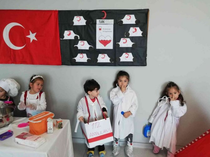 Doktor, hemşire, hasta, aşçı gibi rollere bürünen minikler, düzenlenen etkinlikle hem meslekleri tanıdı hem de Kızılay'ın öneminin farkına vardı.