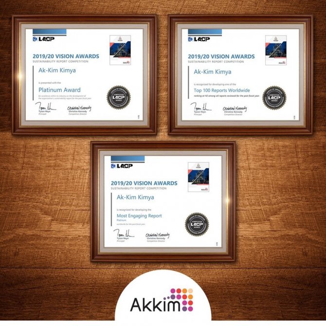 Akkim Kimya, Amerikan İletişim Profesyonelleri Ligi tarafından bir ödüle daha layık bulundu. Şirketin 2018-2019 dönemine ait sürdürülebilirlik raporu, 2019/20 Vision Awards kapsamında Platin Ödül'ün sahibi oldu.