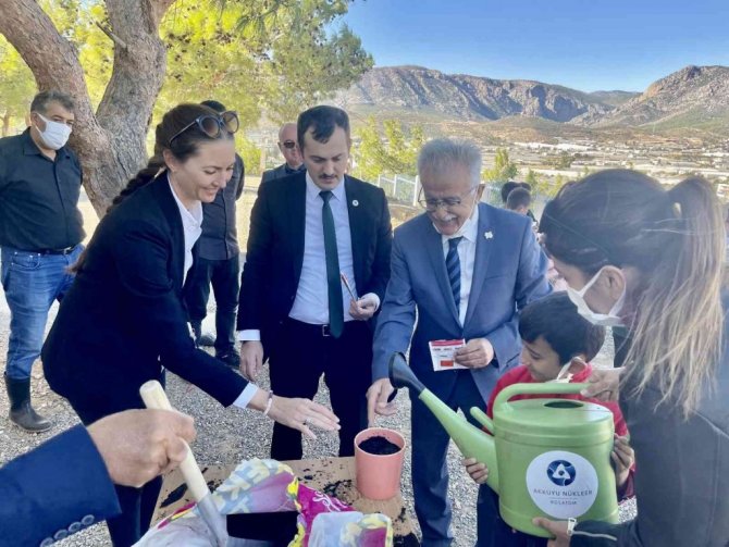 Akkuyu Nükleer A.Ş. temsilcileri, öğrencilerle birlikte mandalina fidanı dikti