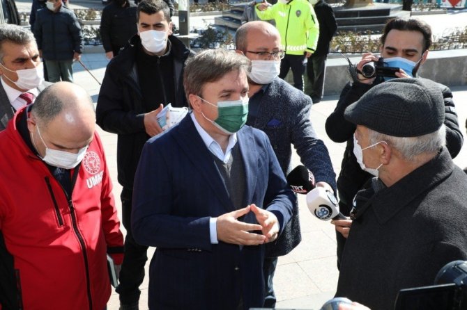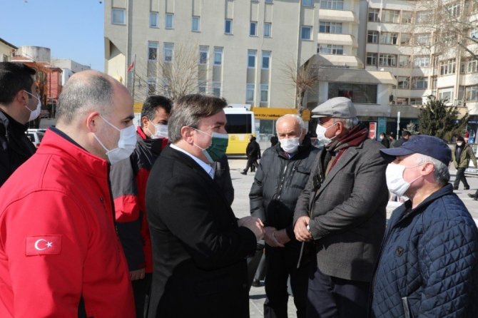 Vali Aydoğdu ve denetim ekipleri daha sonra kent merkezinde alınan tedbirlerle ilgili denetim gerçekleştirdi. 65 yaş üstü vatandaşların bulunduğu Ulu Cami ve Kent Meydanında vatandaşlarla görüşen Vali Aydoğdu, 65 yaş üstü vatandaşların dışarıda bulunma saatlerine azami dikkat etmelerini istedi. Banka önlerinde ve sokaktaki vatandaşlara mesafe ve maske uyarısında bulunan Vali Aydoğdu esnafları da ziyaret ederek salgın tedbirleri konusunda duyarlı olmalarını tedbirlere uyulmasının önemini vurguladı.
