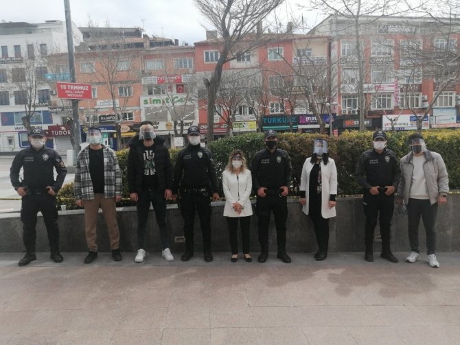 Aksaray'da öğrenciler tarafından tasarlanıp üretilen siperlikler emniyet ve sağlık personeline dağıtıldı.