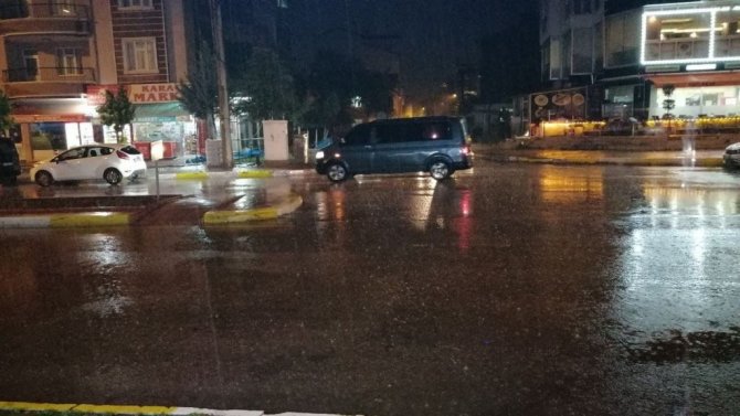 Aksaray'da gece saatlerinde etkili olan gök gürültülü sağanak yağış kenti dakikalar içinde etkisi altına aldı.