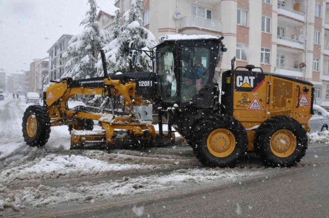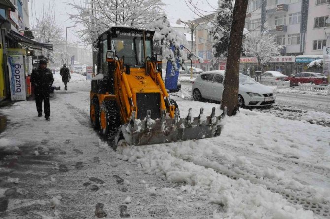 Konya'nın Akşehir ilçesinde dün öğle saatlerinden itibaren devam eden kar yağışı nedeniyle Akşehir Belediyesi ve Konya Büyükşehir Belediyesi ekipleri tarafından aralıksız kar temizliği çalışmaları yapılıyor.