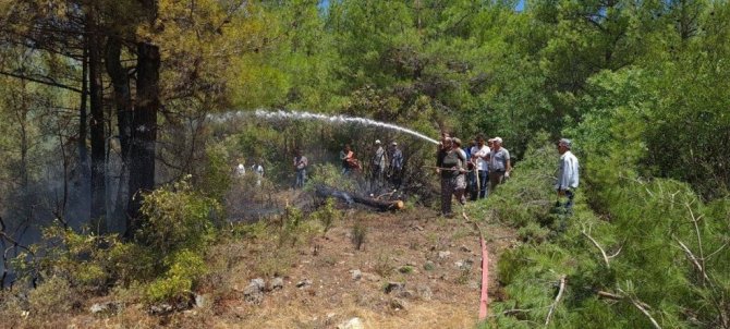 Çevre illerden gelen çok sayıda orman işçisi ve arozözlerle ve köylülerle yangına müdahale ediliyor.
