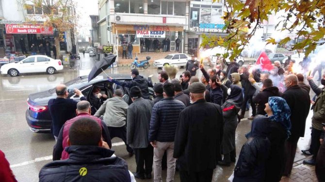 Davul zurna eşliğinde karşılanan Akşener, makam aracından inip partililerle kucaklaştı, bazı vatandaşlarla hatıra fotoğrafı çektirdi. Akşener, yaklaşık 10 dakikalık fotoğraf çekiminin ardından ilçeden ayrıldı.
