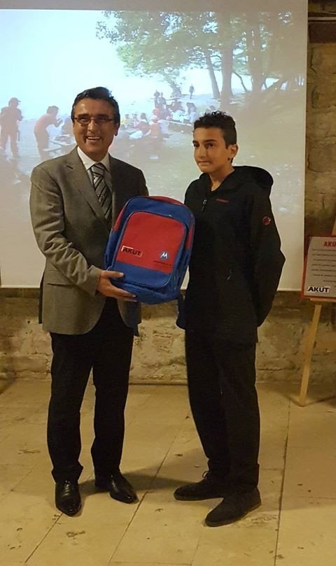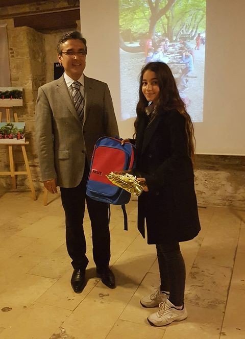 300 öğrencinin arasından ilk beşe giren öğrencilere ödüllerini Kuşadası Kaymakamı Saadettin Yücel ve Belediye Başkanı adına Kültür Müdürü Levent Köylü takdim etti.