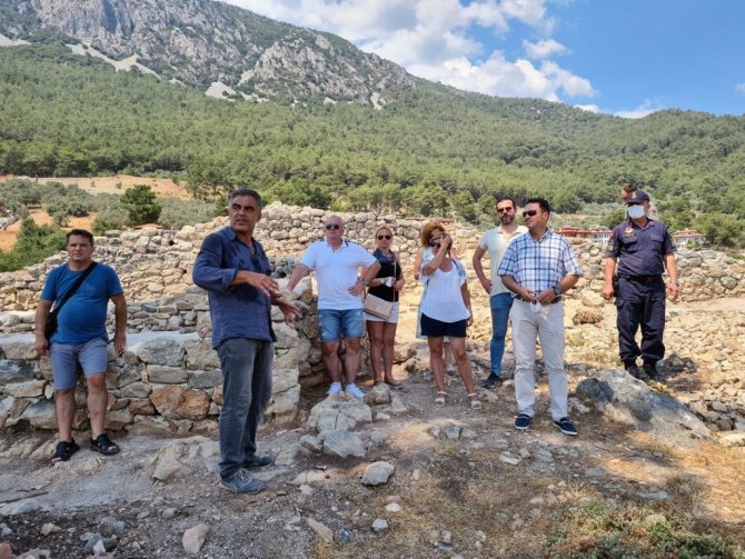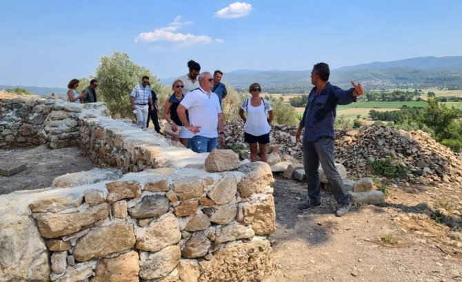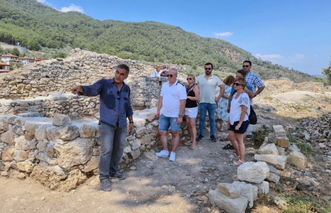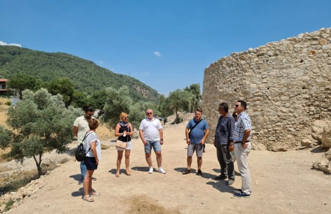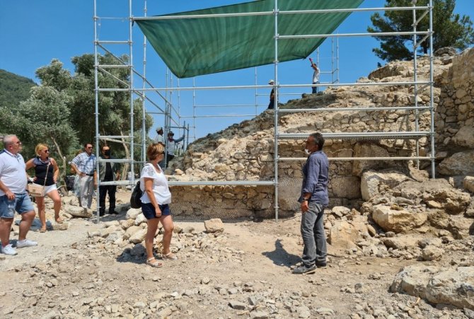 Muğla'nın Ula ilçesi Akyaka Mahallesinde İdyma Antik kentinin kazı çalışmaları kapsamında devam eden Akyaka Kalesini Kuzey Makedonya Cumhuriyeti Genel...