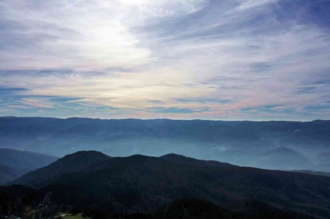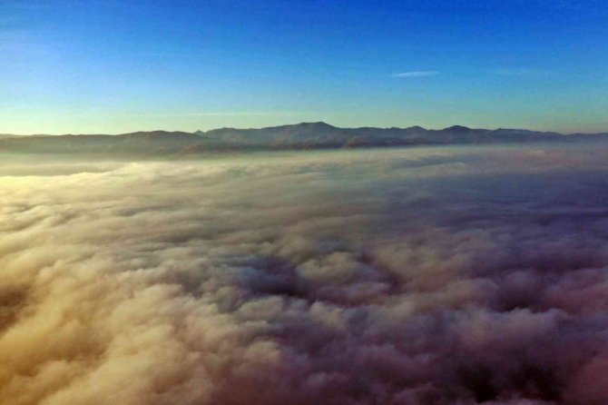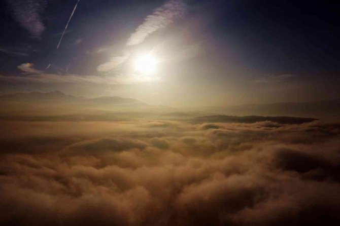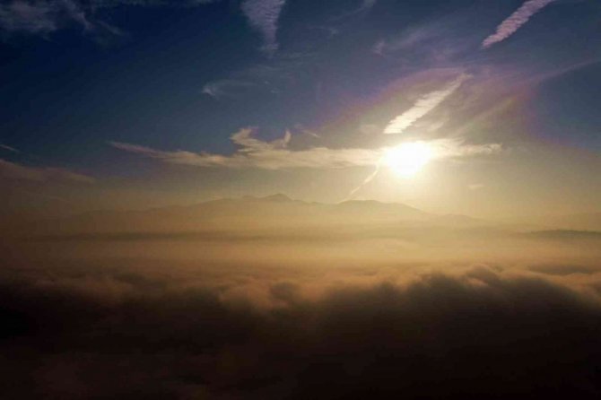 Sakarya'nın Akyazı ilçesi dört mevsim farklı güzellikleri ile dikkatleri üzerine çekmeye devam ediyor. Yaylaları başta olmak üzere birçok farklı yönü ile doğa turizmine ev sahipliği yapan ilçede sis sonbahar ile buluşunca ortaya kartpostallık görüntüler çıktı. Gökyüzünü kaplayan bulutların oluşturduğu manzara görenleri kendine hayran bıraktı. Yaylaları ve ilçe merkezinde havadan görüntülenen Akyazı'da ortaya eşsiz manzaralar çıktı. Renk cümbüşü ve sis bulutlarının adeta dans eden görüntüleri görsel şölen sundu.