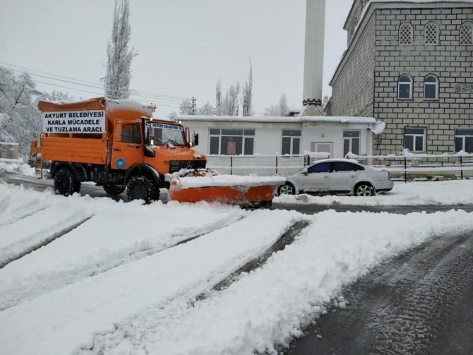Ankara'da mevsim normallerinin altında devam eden hava sıcaklığı sonrasında kar yağışı başladı. Akyurt Belediyesi Fen İşleri Müdürlüğü ekipleri gece nöbet tutarken, kar yağışının başlamasının ardından merkez ve mahalle bağlantı yollarında yoğun bir çalışma başlattı. Sabah yolda kalan bir servis aracı da Akyurt Belediyesi personeli ve araçlarının müdahalesi ile yoluna devam etti.