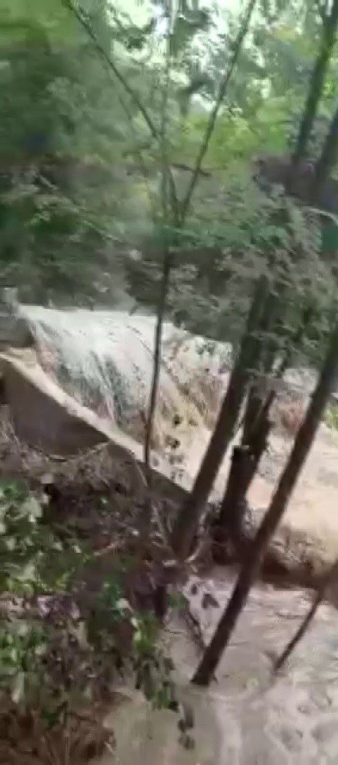 Alabalık tesisini harabe eden sel saniye saniye kaydedildi