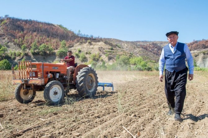 Başkan Akay ve İŞKAD Başkanı Mantı elleriyle yanan topraklara kompost gübre atarken, Başkan Akay daha sonra traktörle tarla sürerek kompostun yanan toprakla bütünleşmesini sağladı. Aladağlı çiftçilere, üretim sürecinde de kullanılmak üzere üretilen kompost gübrelerden armağan eden Başkan Akay, Seyhan Belediyesi yangının yaralarının sarılması konusunda her türlü yardımı yapacaklarını söyledi.