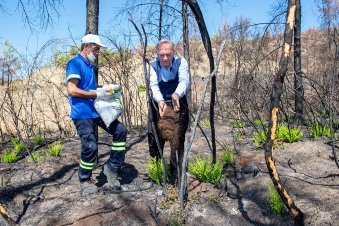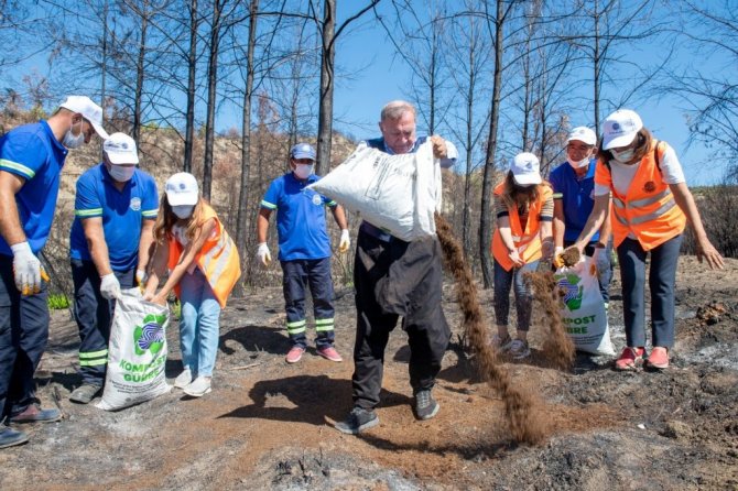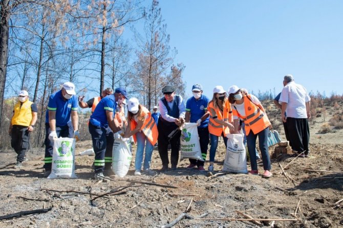 Çocuklara oyuncaklar da armağan eden Başkan Akay, "Gıdamı Koruyorum" projesiyle israfın önlenmesi konusunda bilinç ve farkındalık yaratmayı amaçladıklarını vurguladı. Akay, gıda işletmelerinden toplanan mutfak atıklarının komposta dönüştürülüp, yangında zarar gören toprakların ıslah edilerek yeniden üretim yapılabilir hale getirilmesinde kullanılmasının çok değerli olduğunu dile getirdi. Başkan Akay, "Projemizin amacı hem israfı önlemek hem de organik atıkların çöpe gitmesini önleyip, geri dönüşüm aracılığıyla yeniden doğaya kazandırmak. Kompost gübre topraktaki organik madde miktarını artırıp toprağı hem iyileştiriyor hem de havalandırıyor. Ürettiğimiz kompost gübreleri bugün yangının zarar verdiği topraklarla buluşturduk. Bu toprakların ıslah edilmesini ve geri kazanımını sağlamayı hedefliyoruz. Yanan alanların tekrar bitki yetiştirilebilir hale gelmesi hem ülke ekonomisi hem de üreticilerimiz açısından çok önemli. Üretim sürecinin başlamasına katkıda bulunduğumuz için çok mutluyuz" diye konuştu.