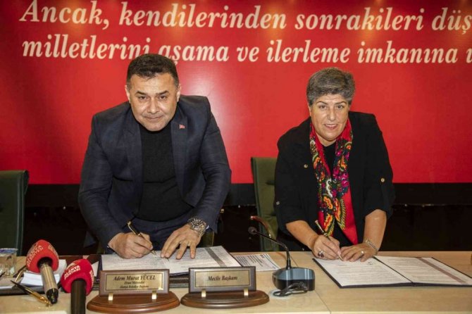 Konuşmaların ardından Alanya Belediye Başkanı Adem Murat Yücel ve TKDF Genel Başkanı Canan Güllü arasında Aile İçi Şiddet Acil Yardım Hattı telefonlarına gelen ihbarların ve başvuruların Alanya Belediyesi Aile ve Kadın Destek merkezine yönlendirilmesini sağlayacak protokole imza attı.