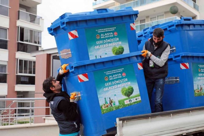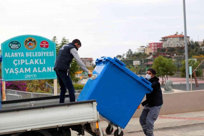 Alanya Belediyesi Temizlik İşleri Müdürlüğü ekipleri, ayrılan 2 Milyon TL'lik yatırım kapsamında Çıplaklı ve Cikcilli Mahallelerine 150 adet sıfır atık konteyneri dağıttı.