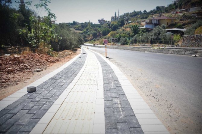 Alanya’da Çevre Yolundan Kurşunlu mevkii’ne kesintisiz kaldırım çalışması