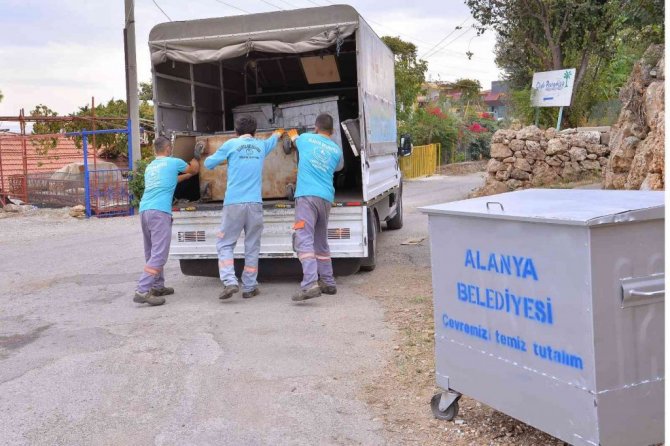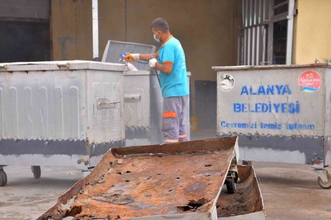 Alanya Belediyesi Temizlik İşleri Müdürlüğü tarafından kent genelindeki tüm çöp konteynerleri yenileniyor. Temizlik İşleri Müdürlüğü bünyesinde oluşturulan bir ekip her gün kentin dört bir tarafındaki eskiyen, yıpranan ve işlevini kaybetmeye yüz tutmuş çöp konteynerlerini tespit ederek bakımlarını ve tamiratını gerçekleştiriyor.
