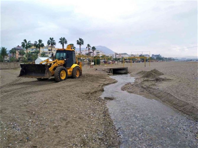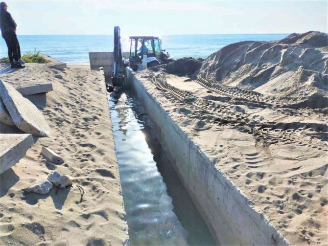 Çalışmalar kapsamında derelerin sahille buluştuğu noktalarda da menfez ağızları açılarak önlem alınıyor.