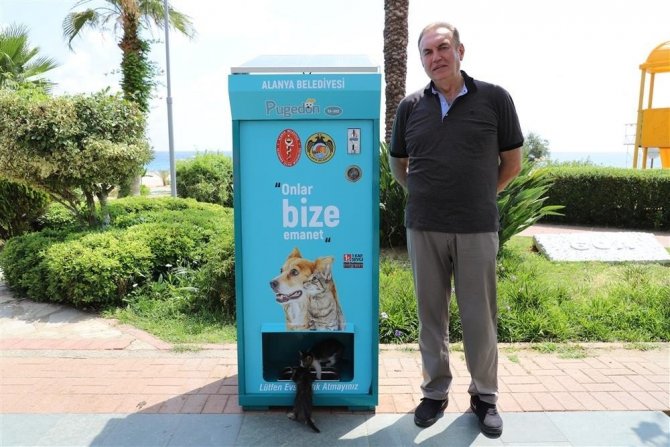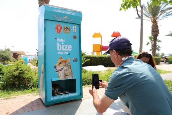 Alanya Belediyesi Veteriner İşleri Müdürlüğü tarafından sokak hayvanları için özel olarak tasarlanan mamamatik Pugedon hizmete girdi.