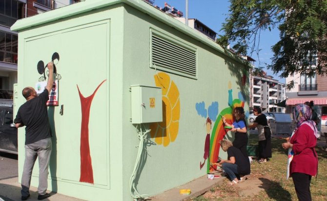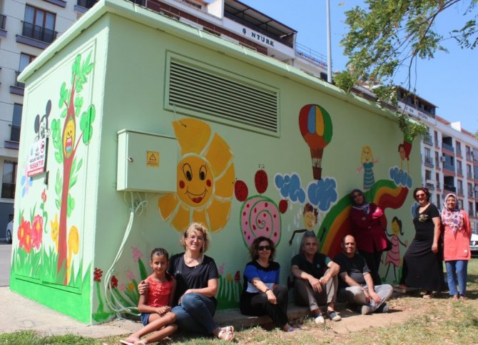 Manisa'nın Alaşehir ilçesinde gönüllü ressamlar kentin çeşitli noktalarında uygunsuz yazılarla karalanmış olan elektrik trafolarının cephelerini plastik boya ile resimler yaparak kenti güzelleştiriyor.