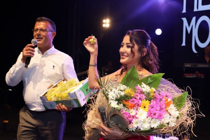 Alaşehir Belediye Başkanı Ahmet Öküzcüoğlu, Alaşehirlileri coşturan Melek Mosso'ya teşekkür ederek, Alaşehir üzümü ve çiçek verdi.