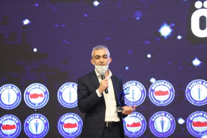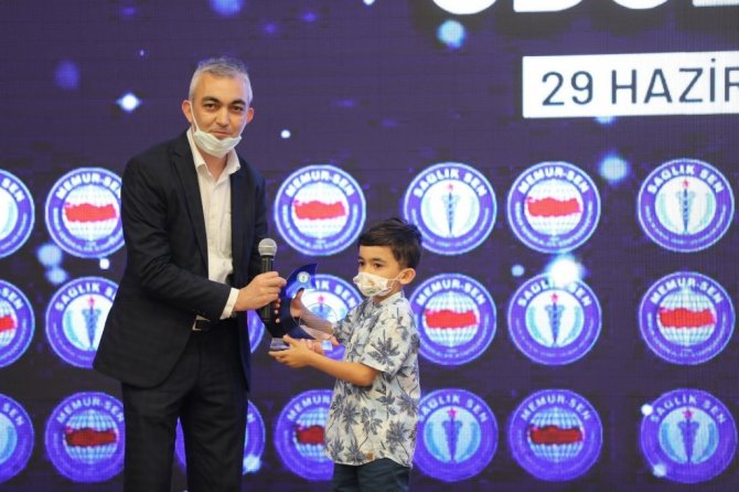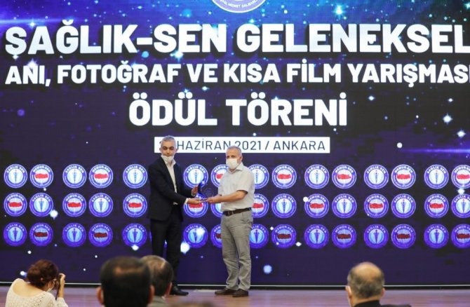 "Babam" isimli kısa filmiyle Sağlık Sen'in kısa film yarışmasında ikinci seçilerek Ankara'da düzenlenen törenle ödülünü alan Manisalı sağlıkçı İsmail Aybey, filmde rol alarak korona virüsten babasını kaybeden bir çocuğu canlandıran oğlunu sahneye çağırarak plaketi oğluna takdim etti.