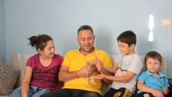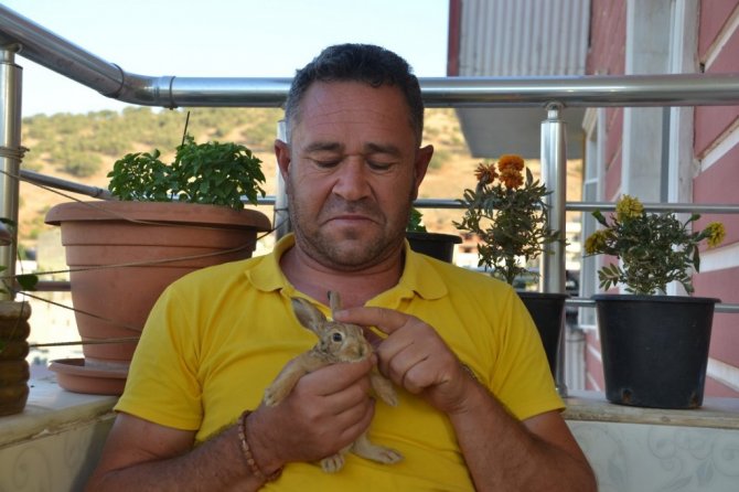 Mardin'in Mazıdağı ilçesinde, İlçe Orman Şefliği'nde çalışan mevsimik orman işçisi Servet Irmak, 290 dekar alanda çıkan yangında can havliyle kaçan yavru tavşanı yaşama tutundurdu.