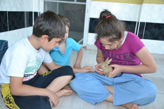 Alevlerin arasından kaçan yavru tavşanı hayata tutundurdu