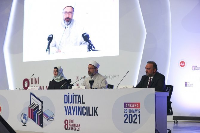 "Dijital Yayıncılık" başlığıyla çevrim içi düzenlenen kongrenin değerlendirme oturumunda konuşan Diyanet İşleri Başkanı Erbaş, kongrenin hazırlanmasında ve başarılı bir şekilde gerçekleştirilmesinde emeği bulunanlara teşekkür ederek, "Tebliğleriyle, sunumlarıyla ve müzakereleriyle son derece değerli katkılar sunan ve dijital yayıncılık alanında ufuk açıcı yaklaşımlar ortaya koyan değerli ilim insanlarımıza, hocalarımıza ve meslektaşlarımıza şükranlarımı sunuyorum. Cenab-ı Allah hepinizden razı olsun" dedi.
