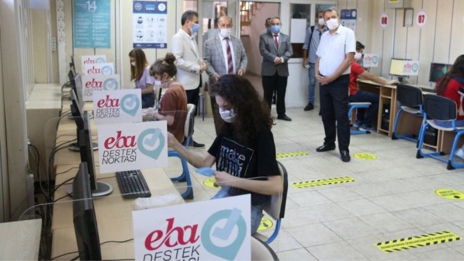 Açılış kurdelasını kesen Müdür Başyiğit, EBA Destek Noktasının internet imkanı olmayan öğrenciler için hizmete sunulduğunu ifade ederek, hayırlı olması diledi. EBA Destek Noktasını gezen Başyiğit, daha sonra okulda incelemelerde bulundu.