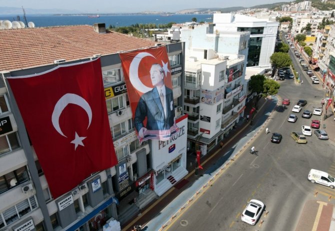 Aliağa Belediyesi, 30 Ağustos Zafer Bayramı öncesi kentteki hazırlıklarını tamamladı. Caddeler boydan boya Türk bayrakları ile donatıldı. Kamu binaları, iş hanları ve fiziki uygunluğu olan ilçedeki yüksek katlı yapılara büyük Türk bayrakları ve Atatürk posterleri asıldı. Aliağa Belediyesi tarafından yıllardır apartmanlara asılan dev bayrak ve posterler için vatandaşların daireleri ve balkonları da kullanıldığından pandemi tedbirleri nedeniyle bir süredir apartmanlara bayrak ve poster asılamazken, pandemi kısıtlamalarının kaldırılmasının ardından 30 Ağustos Zafer Bayramı'nda binalar yeniden Bayrak ve Posterlerle donatıldı.