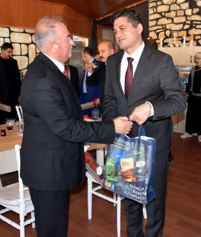 Aliağa protokolü, Öğretmenler Günü kutlama etkinliklerinde okul müdürleriyle bir araya geldi. Programda öğretmenlerin gününü kutlayan Aliağa Belediye Başkanı Serkan Acar, program sonunda Aliağa Belediyesi’nin “Aliağa Kent Kitaplığı” altında yayımladığı toplam bin 472 sayfalık dev kültür birikimini özel set halinde okul müdürlerine hediye etti.