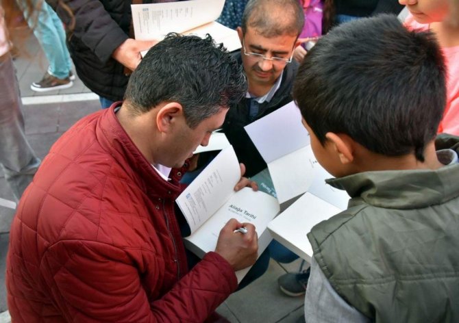Kitabın ilk dağıtımını Aliağa Belediye Başkanı Serkan Acar yaptı. Sanat Sokağında kitap standının başına geçen Başkan Serkan Acar, 500 adet kitabı Aliağalılara dağıttı. Okuyucusuyla ilk buluştuğu andan itibaren yoğun ilgi gören kitabın dağıtımı esnasında izdiham yaşandı. Vatandaşlar başucu kitabı olabilecek niteliğe sahip olan kitabı edinebilmek için birbirleriyle yarıştı. Kitap dağıtımına yoğun ilgi gösteren küçük büyük herkes, edindikleri kitapları Başkan Serkan Acar’a imzalatabilmek için de sıraya girdi.