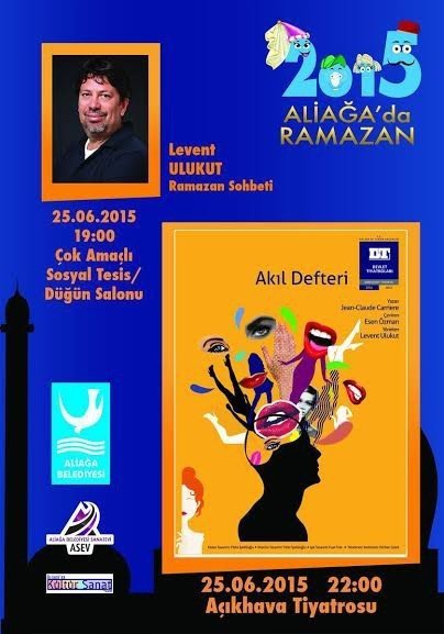 İzmir Devlet Tiyatrosu, Akıl Defteri ile Aliağalı tiyatroseverlerle buluşacak.Jean-Claude Carriere’in yazdığı, Esen Özman’ın Türkçeye kazandırdığı oyunu yönetip oynayan Levent Ulukut’a sahnede, Gülay...
