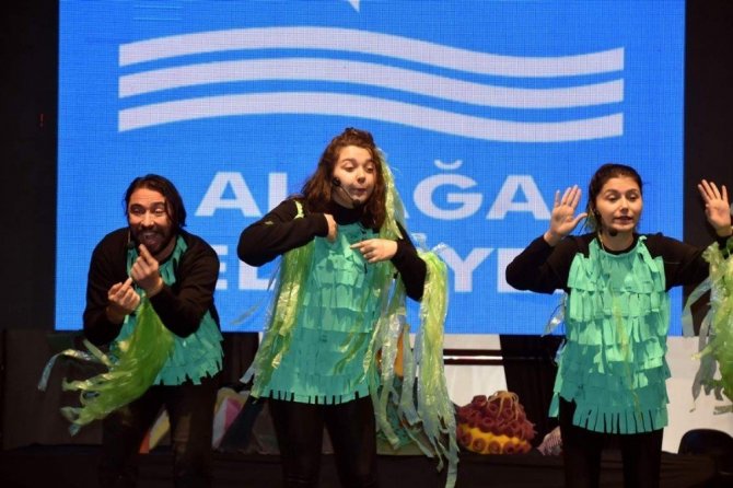 Avcı Ramadan Çocuk Oyun ve Rekreasyon Alanında kurulan 800 metre kare kapalı Aliağa’nın ilk geçici gösteri merkezinde gerçekleştirilen etkinlikler kapsamında sahnelenen “Denizaltı Masalı” isimli müzikli danslı çocuk oyunu çocuklara tiyatro keyfi yaşattı. Tiyatro gösterimin hemen ardından sahne alan ’Akademi Halk Dansları Topluluğu’nun folklorik gösterileri küçük izleyicisinden büyük alkış aldı.