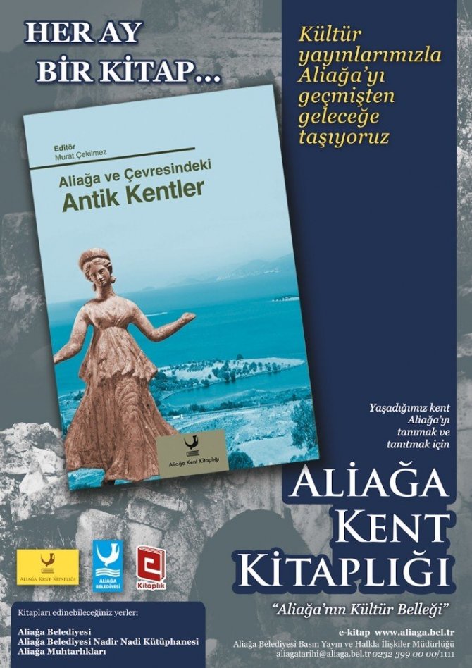 Aliağa Belediyesinin kültür yayınları dahilinde hazırlanan ve Aliağa Kent Kitaplığının 9. yayını olan “Aliağa ve Çevresindeki Antik Kentler, Kyme, Myrina, Gryneion, Tisna, Elaia, Aigai, Larisa” kasım ayının kitabı olarak okuyucu ile yeniden buluşuyor.