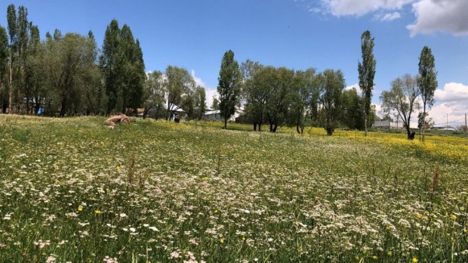 Allahuekber Dağları'nın etekleri çiçeklerle süslendi. Yazın habercisi olan rengarenk çiçekler görsel şölen oluşturdu.