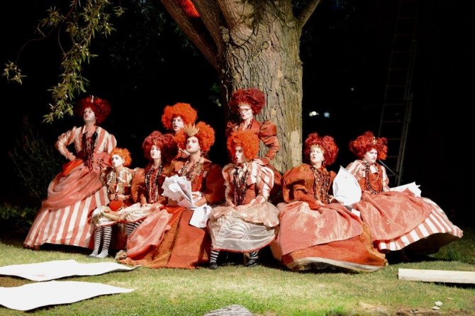 Almanya’daki tiyatro sahnelerinde masallardan yola çıkarak sahnelenen oyunların kostüm ve sahne tasarımları, İzmir Ekonomili modacılar tarafından yapılıyor.