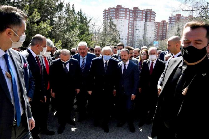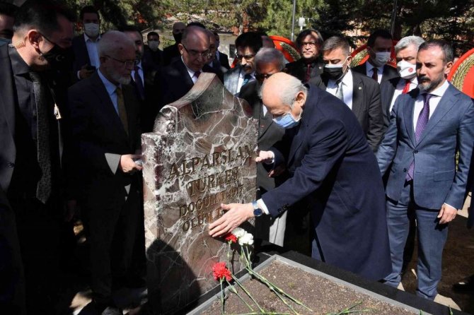 Kur'an-ı Kerim okunmasıyla başlayan anma törenine, MHP Genel Başkanı Devlet Bahçeli'nin yanı sıra MHP Genel Başkan yardımcıları, milletvekilleri ve vatandaşlar katıldı. Türkeş'in mezarına kırmızı-beyaz karanfiller bırakan Bahçeli, dua edip kabrini suladı.